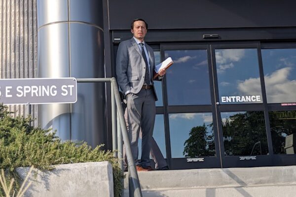 A former Lake Havasu City firefighter ducked behind a column and his attorney before taking a secondary route to avoid being photographed from the front outside the main entrance following his September 29 arraignment at the Mohave County Law and Justice Center in downtown Kingman.