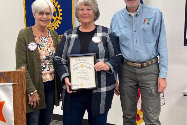 Kingman Route 66 Rotary Club welcomed the newest member this month, Carol Johnson with Cindy Vawter, the president and Charlie Teagarden, membership.
