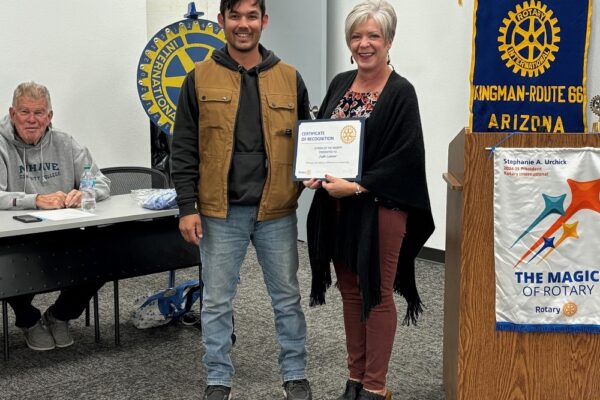 Kingman Route 66 Rotary Club has named Jesh Liewer of Black Bridge Brewery as November’s Citizen of the Month. Pictured are Liewer and Rotarian Becky Fawson.
