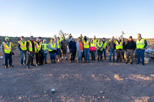 BULLHEAD CITY – Dozens of volunteers removed 7.94 tons of trash and debris from the desert along Silver Creek Road on Friday during the City of Bullhead City’s annual cleanup event, held in partnership with Golden Vertex, Republic Services, and the Bureau of Land Management on Friday, February 20. The entire event lasted just a few hours, kicking off at 7:30 a.m. and finishing at noon.