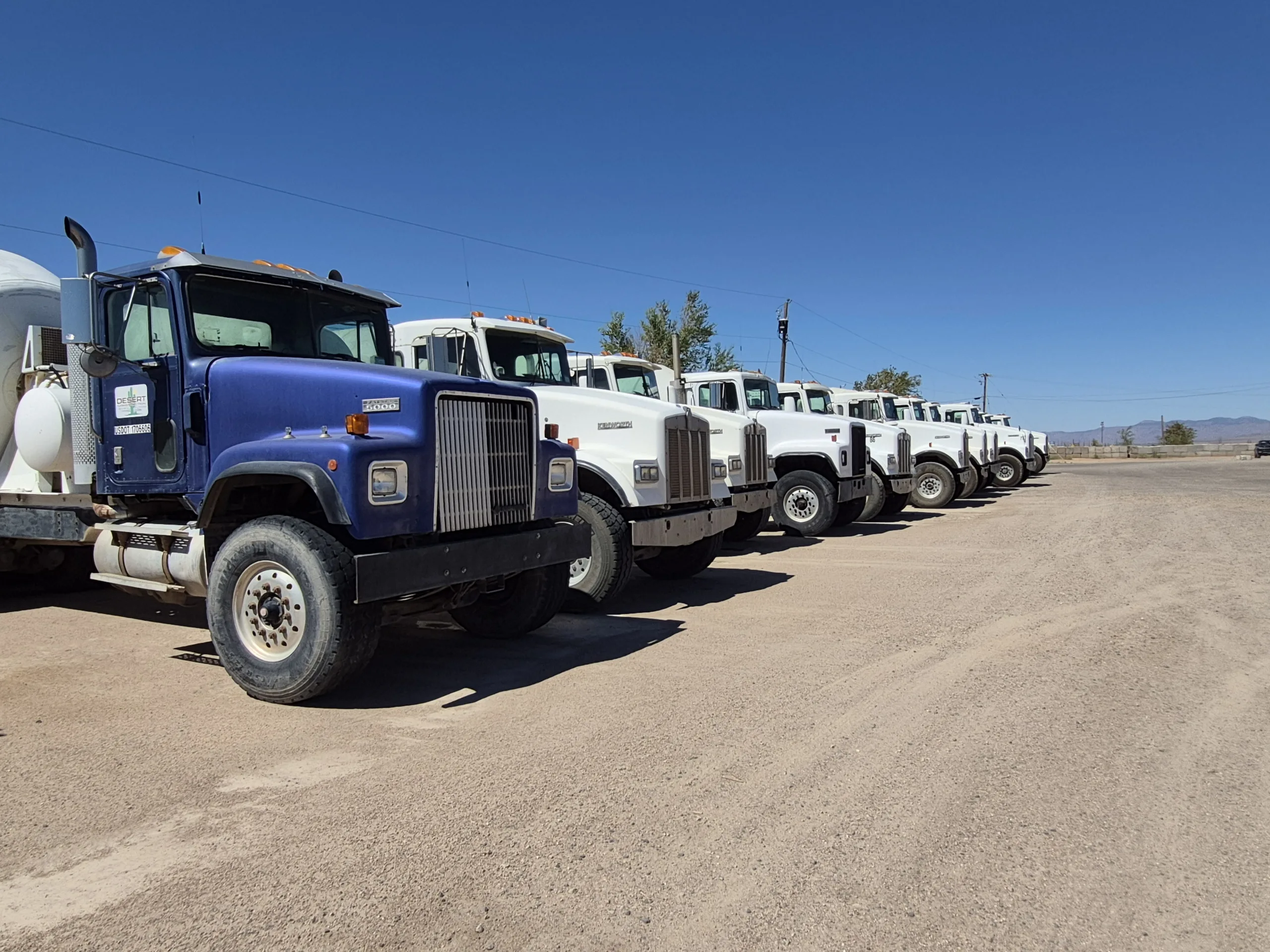 Featured photo: Cement trucks at rest in the Desert Construction yard after a long day of delivering concrete. Photo by Becky Foster