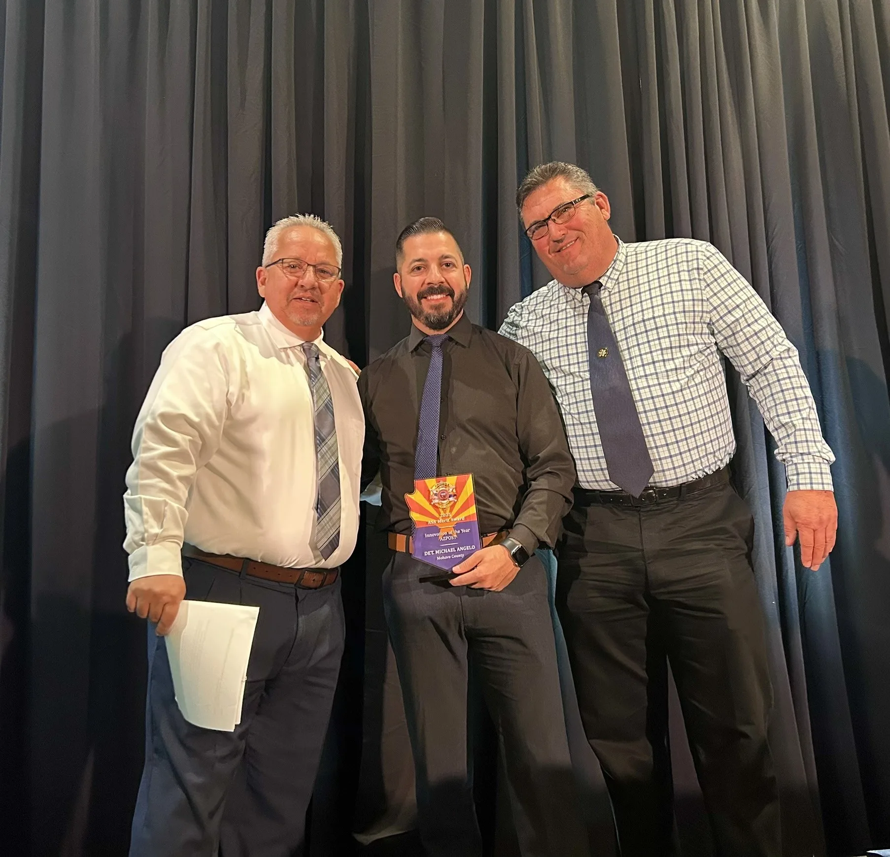 MOHAVE COUNTY – On December 9, 2025, Mohave County Sheriff’s Detective Michael Angelo received the Innovation of the Year Award during the Arizona Sheriff’s Association 2025 Merit Awards Banquet. This award recognizes a Law Enforcement professional who has created an innovative process, program or procedure that has contributed to the improvement of investigations, operations, crime prevention, or any other significant improvement in public safety.
