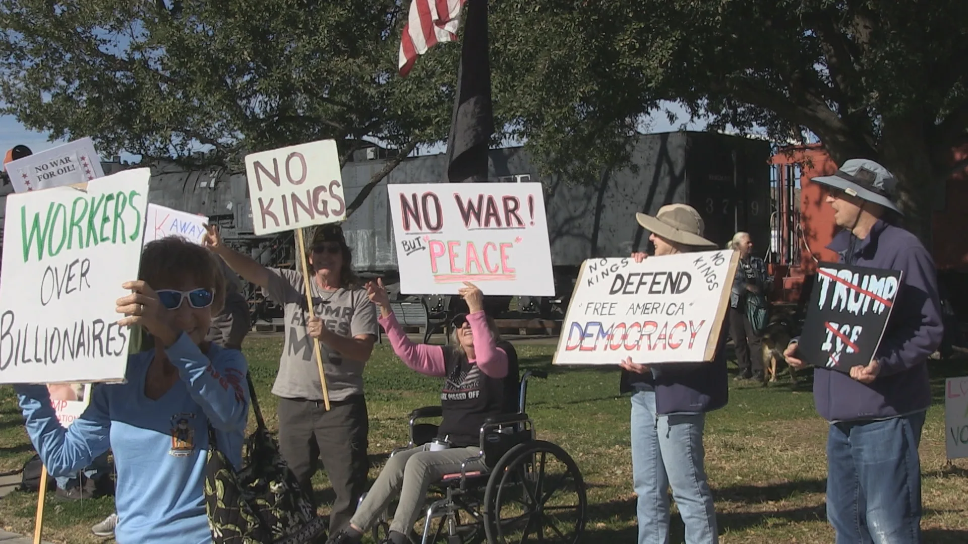 KINGMAN – A small but resolute group assembled at Locomotive Park this week as part of a coordinated wave of demonstrations taking place across the country in response to actions by the current federal administration.