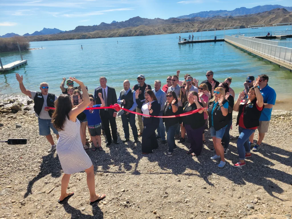 City leaders, including department heads, county officials and former Mohave County Supervisor Buster Johnson all were on hand Friday, Feb. 27 to celebrate the grand opening and ribbon cutting for the new dock at Site Six.