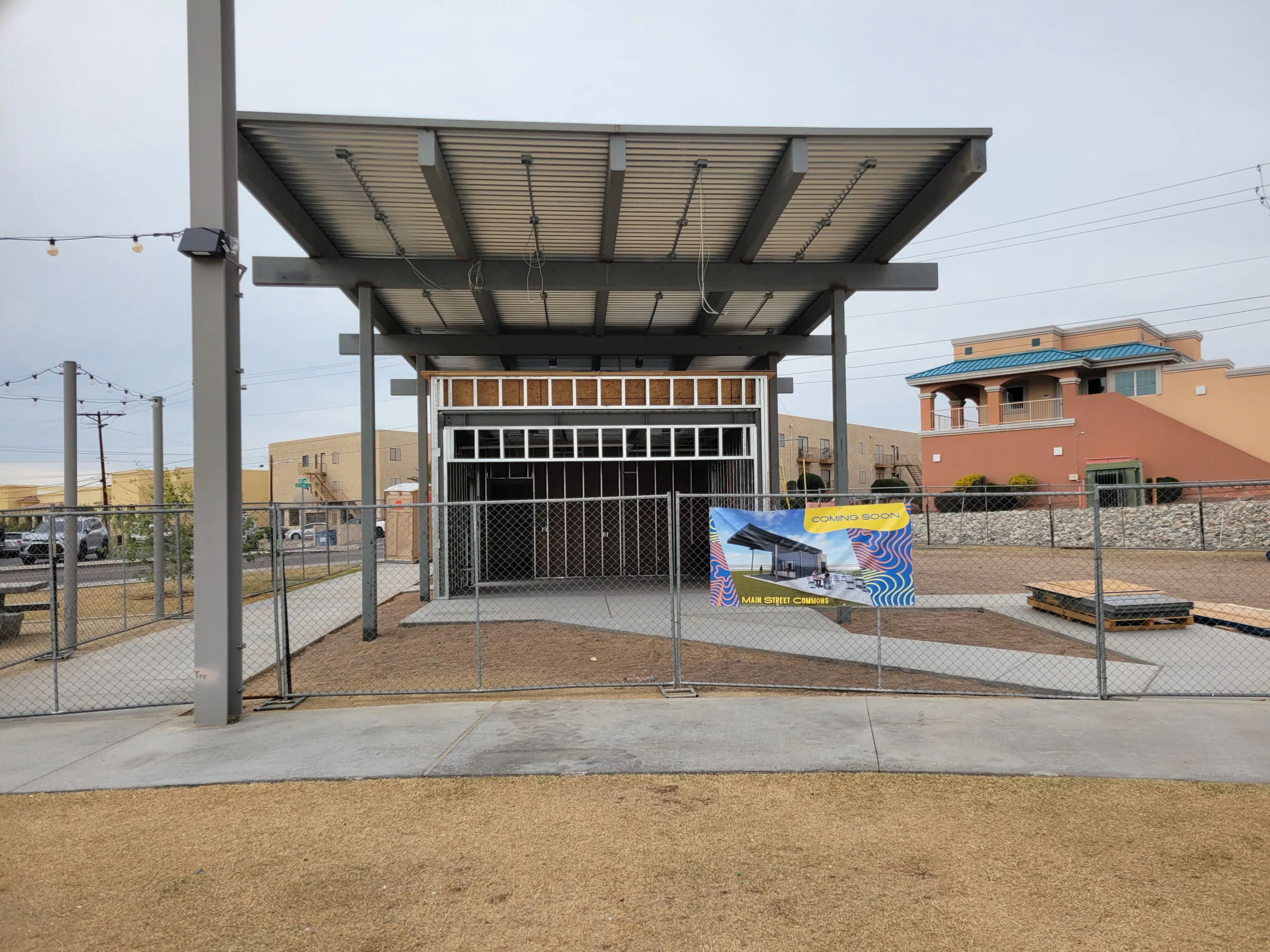 A building for concessions, a public restroom building and eight additional shade canopies in the Main Street Commons are on track for a mid-May completion, according to a press release from Jerri Bracamonte, the city’s community engagement officer.