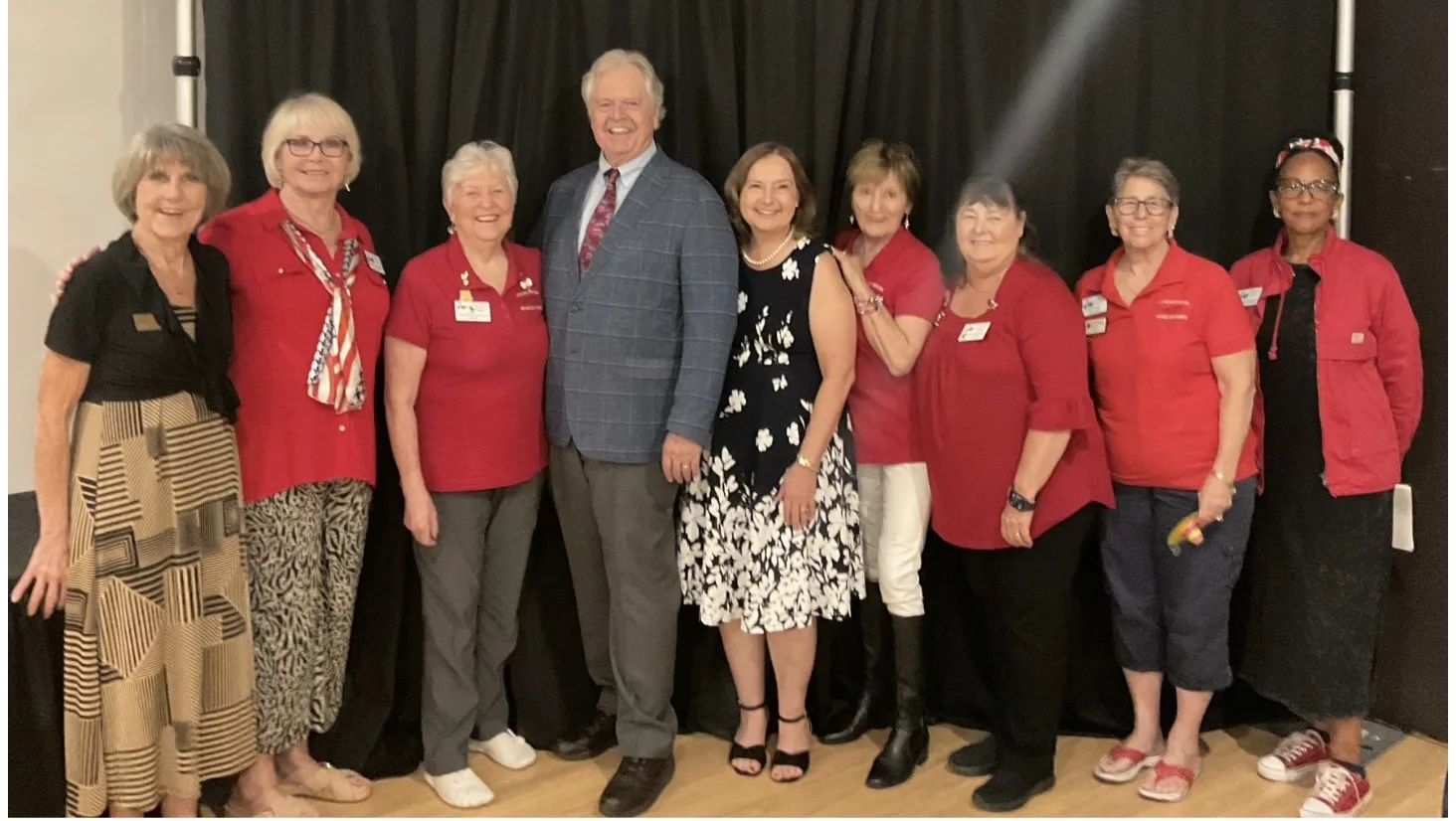 The club donation more than $9,000 to the Caldwells that evening. Tom announced his book, “The Mouths of the Wicked.” Pictured from left to right, Ellen Albert, Kathy Ellsworth, Ginny Buckalew, Tom and Sharon Caldwell, Lynn Lawhorn, Betty Webster, Pam Ford and Stefanie Michels.