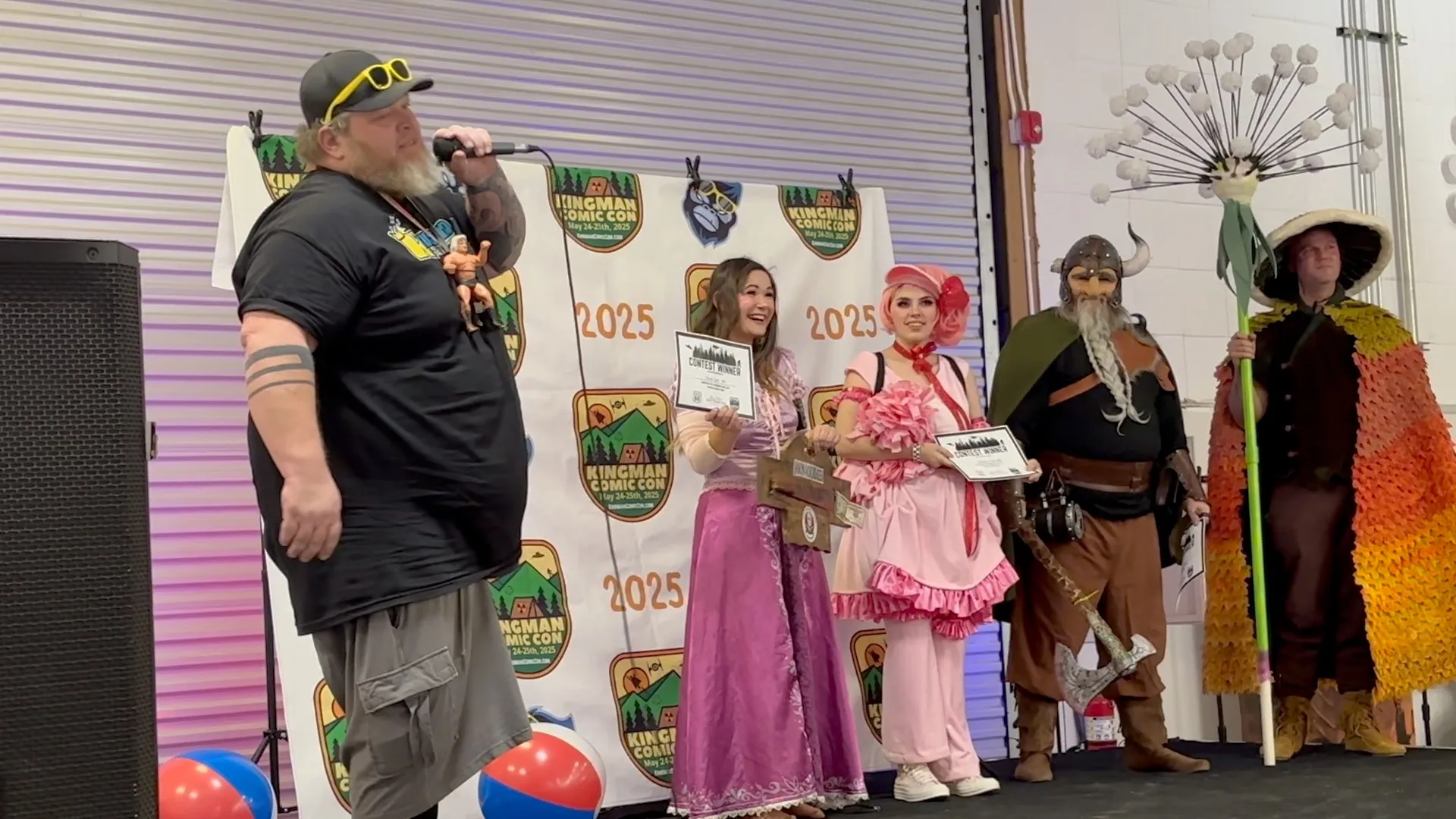 Photo: Mike Esser announcing the winners of the King Con Cosplay Contest. Photos by Alan Hayman.