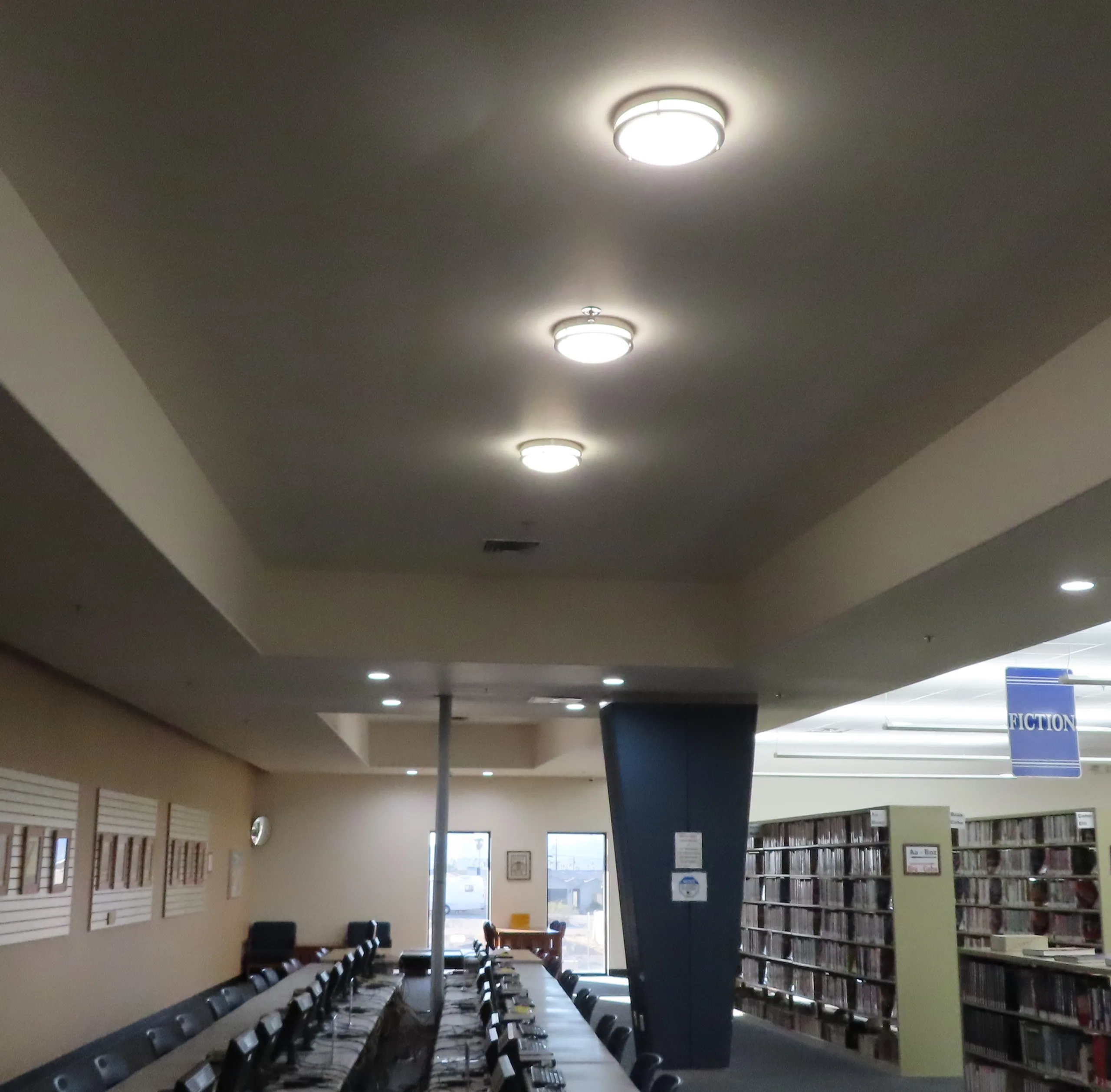 In addition to the public bathroom renovation project, the interior lighting throughout the building has been renovated with state-of-the-art LED fixtures. As the aging fixtures had been deteriorating and failing, this important improvement has added more light in much needed areas, and has created a cleaner appearance. Immediate financial benefits have already been seen with a substantial reduction in the library’s monthly electric bill.