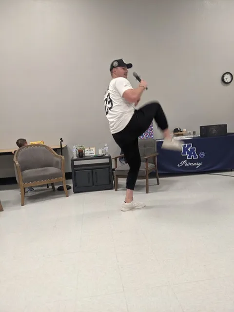 Bradley interviewed Tarik in a relaxed atmosphere before scores of 4-7-year-old students, some parents and teachers and the KAOL High School baseball team. She asked about lessons learned in his athletic endeavors.