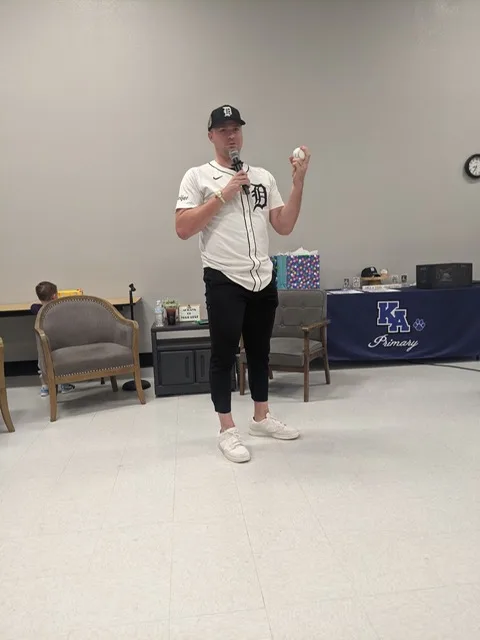 Tarik Skubal address a Feb. 2 student assembly at the KAOL primary school. Skubal played baseball for the KAOL Tigers long before winning back-to-back American League Cy Young awards as a superstar starting pitcher for the Detroit Tigers. Dave Hawkins