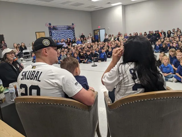 KINGMAN — Major League baseball superstar Tarik Skubal and his wife Jessica returned to their “home field” Monday, visiting the Kingman Academy of Learning (KAOL) Primary and Intermediate schools that they attended as kids. They brought their six month and two-year old children with them as they helped school officials present Skubal Award certificates and autographed baseballs to deserving students and teachers.